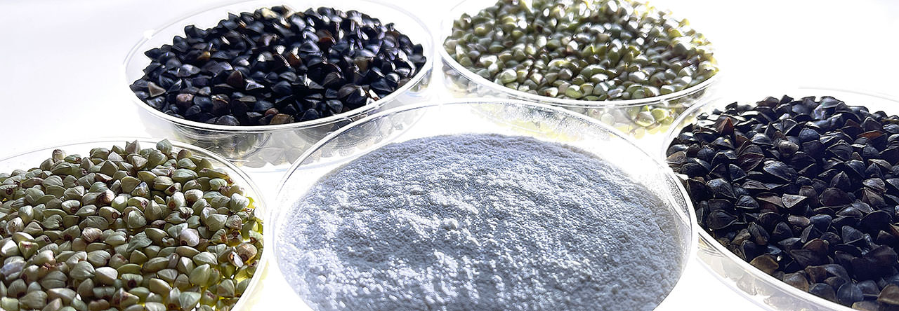 国内、輸入原料の丸ヌキを使用した蕎麦粉。甘皮を取り除く事によりのど越し、食感の良い蕎麦が出来あがります。